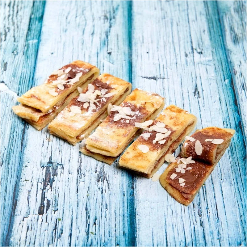 Warme msemen (Marokkaanse ambachtelijke pannenkoek) met dadelcrème, gesmolten kaas en honing0