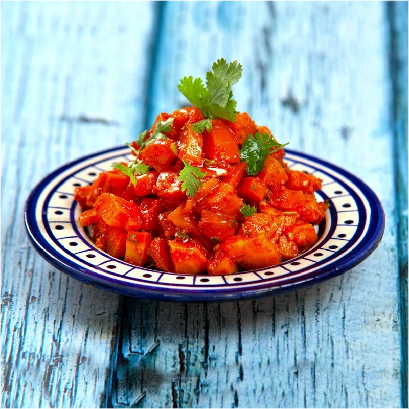 Marokkaanse wortelsalade is een frisse salade van gekookte wortelen, gekruid met citroen, olijfolie, komijn en koriander. Het is een licht en kruidig bijgerecht uit de Marokkaanse keuken0